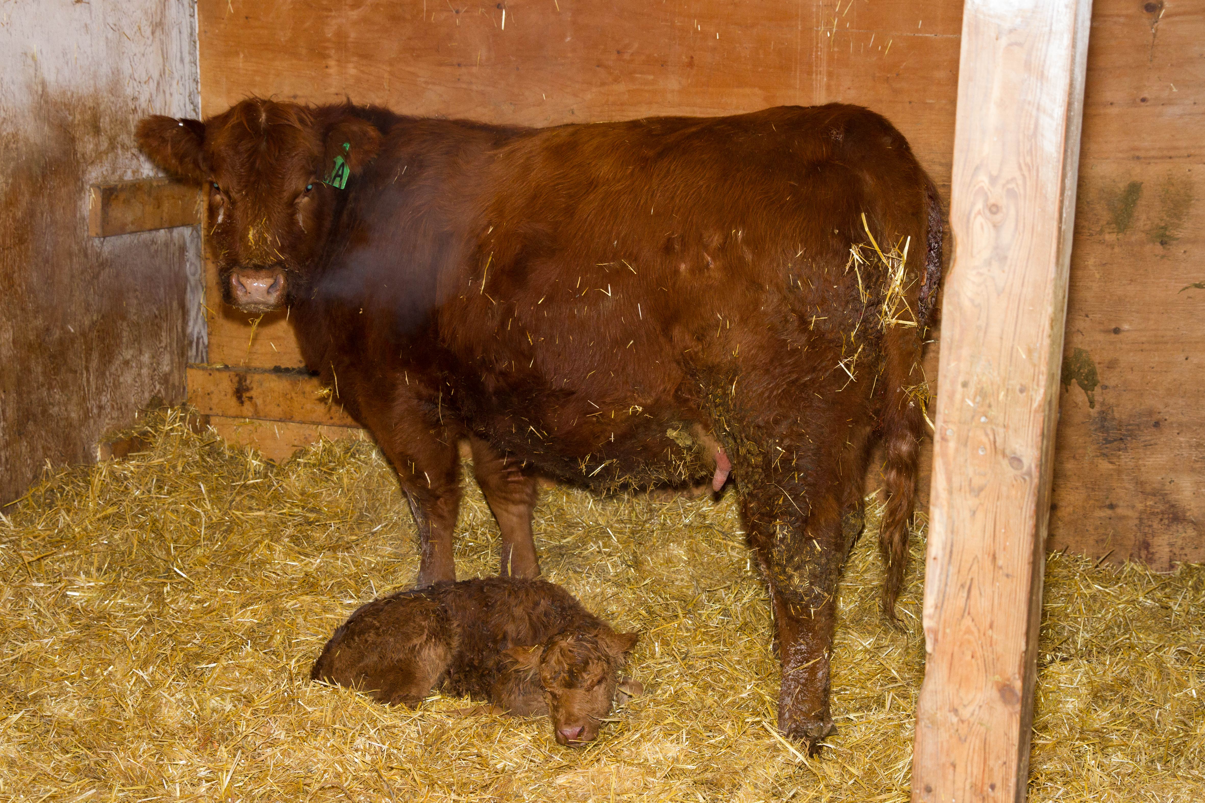 But then, next morning, when both of us are about to head back to town for our respective jobs….another incident on the straw bed. Another new calf from a young bred heifer! Oh right….back in May of last year the bulls broke out!