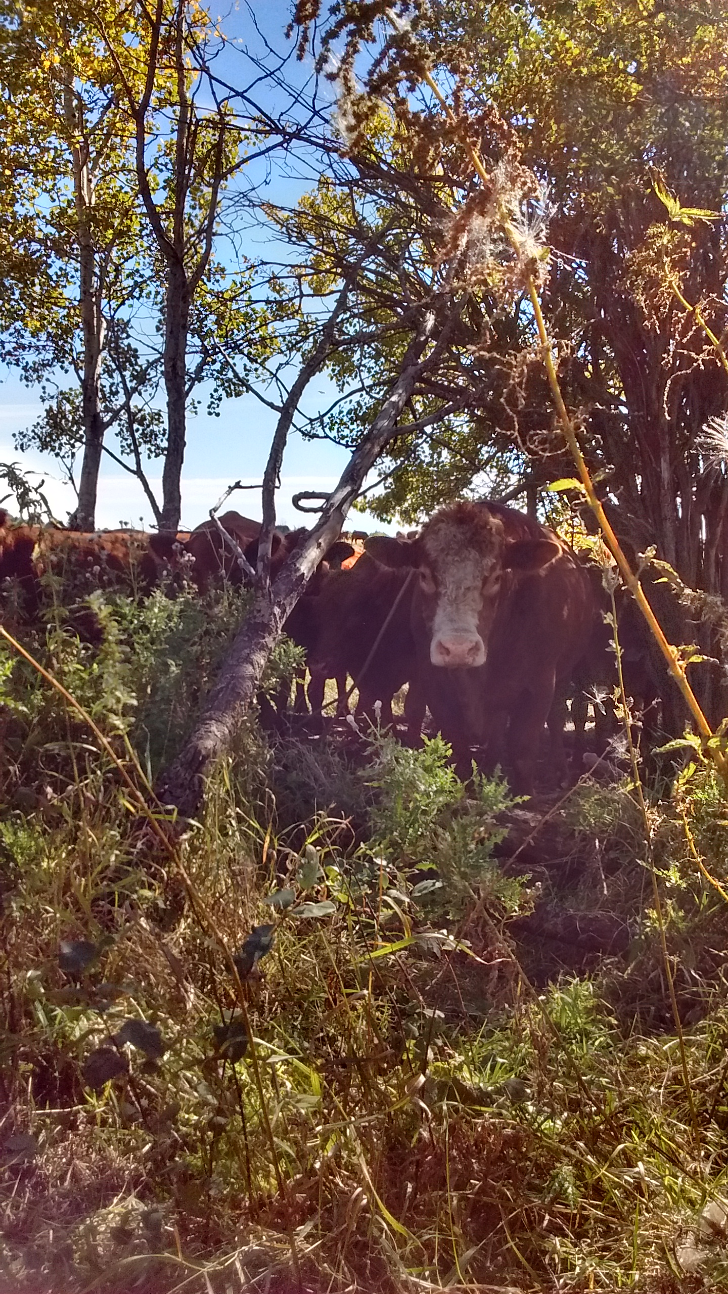 Back to the search to find, in yet another field, pacing the fenceline, on the wrong side of the fence, a lonely bull, one of our newest ones, anxious to find his buddies and brothers.